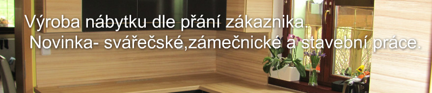 Dobrý den,vítáme Vás na našich stránkách.Na úvod by jsme Vás chtěli informovat, že v našem oboru působíme déle jak 15.let.Vyrábíme nábytek dle přání zákazníka (kuchyně,skříně,dveře,obložky,pokládka podlah,pergoly,zábradlí atd.)Nově také svařování drobných konstrukcí,mříže do oken,zábradlí apod.Naší prioritou je vaše spokojenost.Samozřejmostí je osobní přístup,rychlé a co nejefektivnější řešení Vaší zakázky.V případě jakkýchkoliv dotazů nás neváhejte kontaktovat.